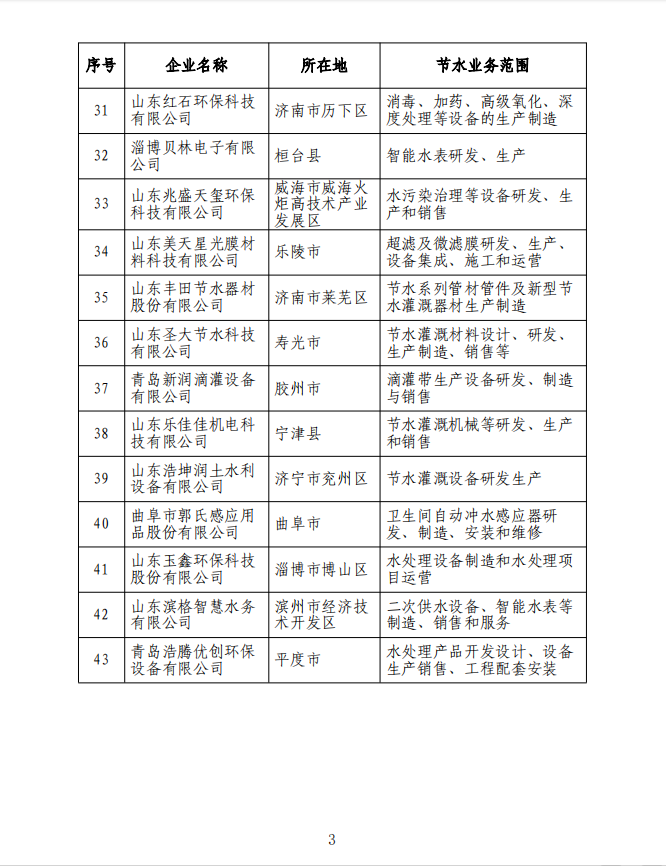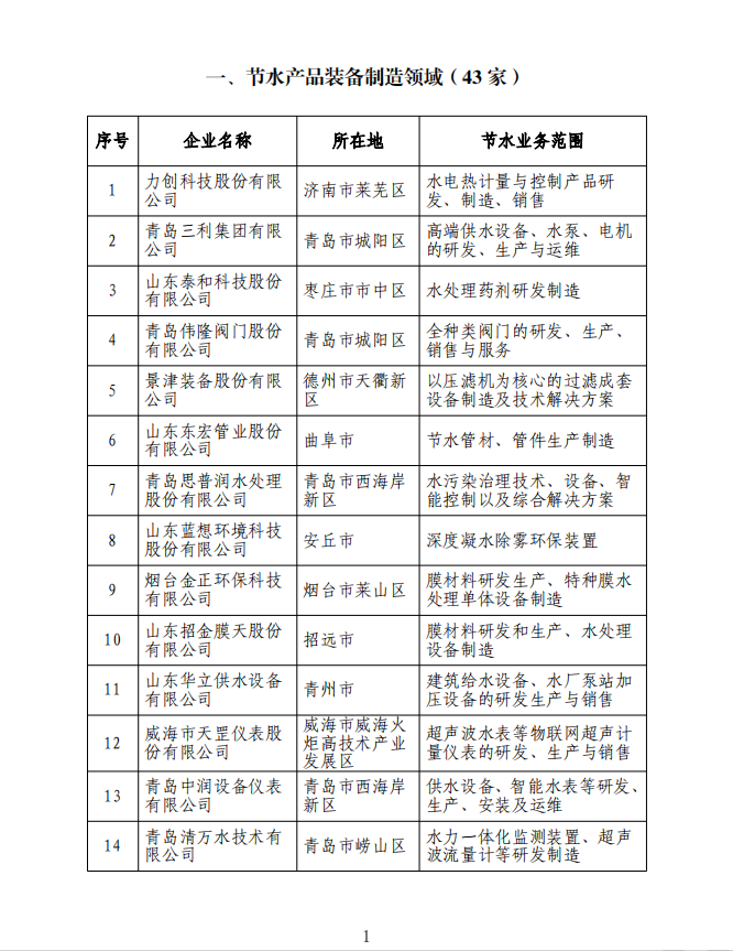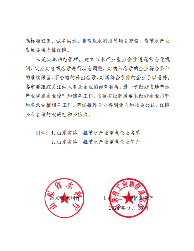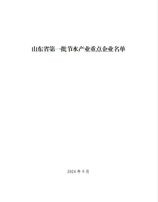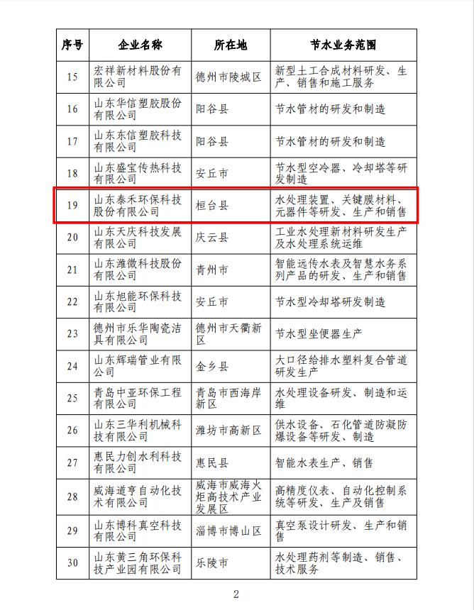 祝賀山東泰禾成功入選“山東省第一批節水產業重點企業名錄”